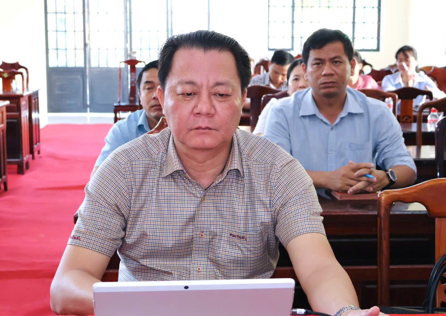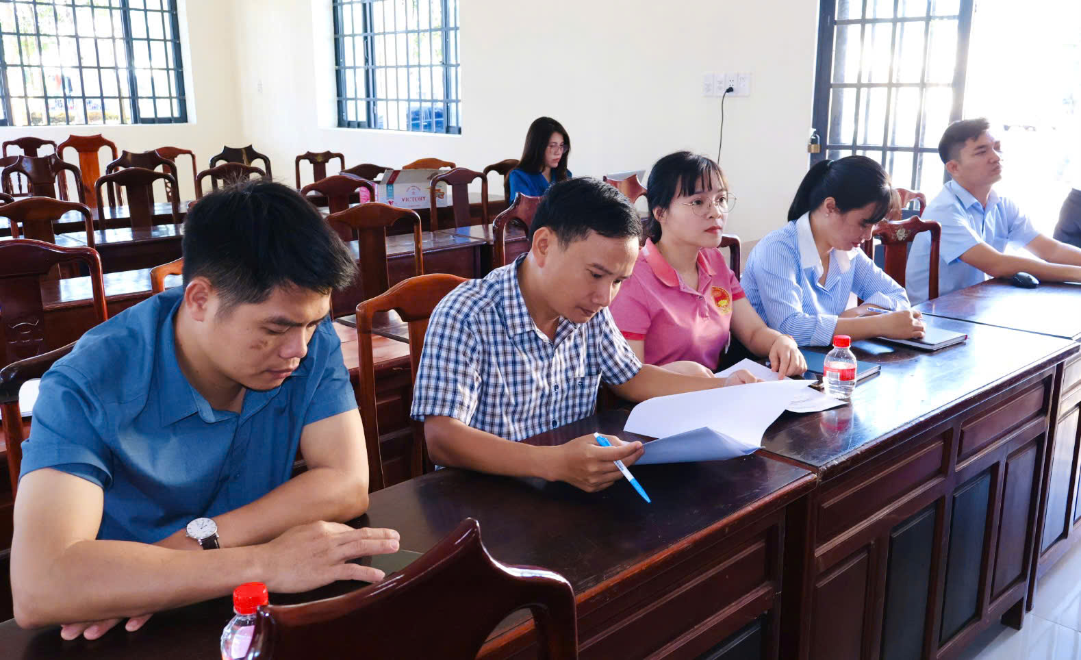 Buổi sinh hoạt trực tuyến ết hợp trực tiếp tại điểm cầu xã Minh Đức có sự tham dự của đồng chí Huỳnh Văn Minh – Chủ tịch UBND xã, đồng chí Lê Xuân Thắng – phó Chủ tịch HĐND xã, đồng chí Trần Văn Tú – phó Chủ tịch UBND xã và toàn thể Đảng viên Đảng bộ UBND xã.