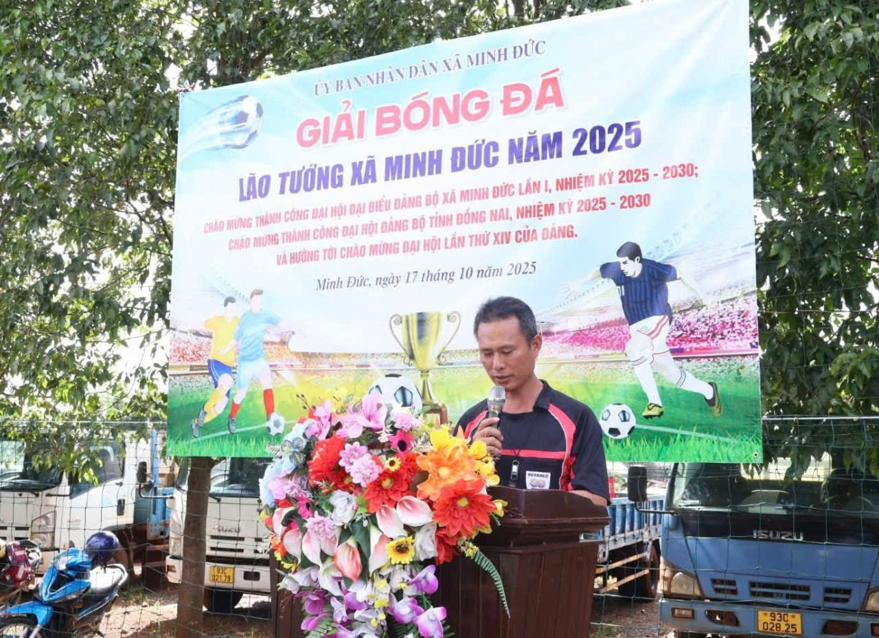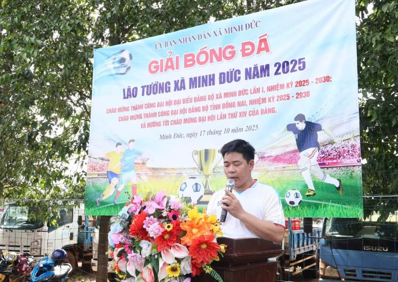 Chiều ngày 17/10/2025, tại sân cỏ nhân tạo Đội Bình Minh (ấp 1B, xã Minh Đức, tỉnh Đồng Nai), Ủy ban nhân dân xã Minh Đức đã long trọng tổ chức Giải bóng đá Lão tướng xã Minh Đức năm 2025.
