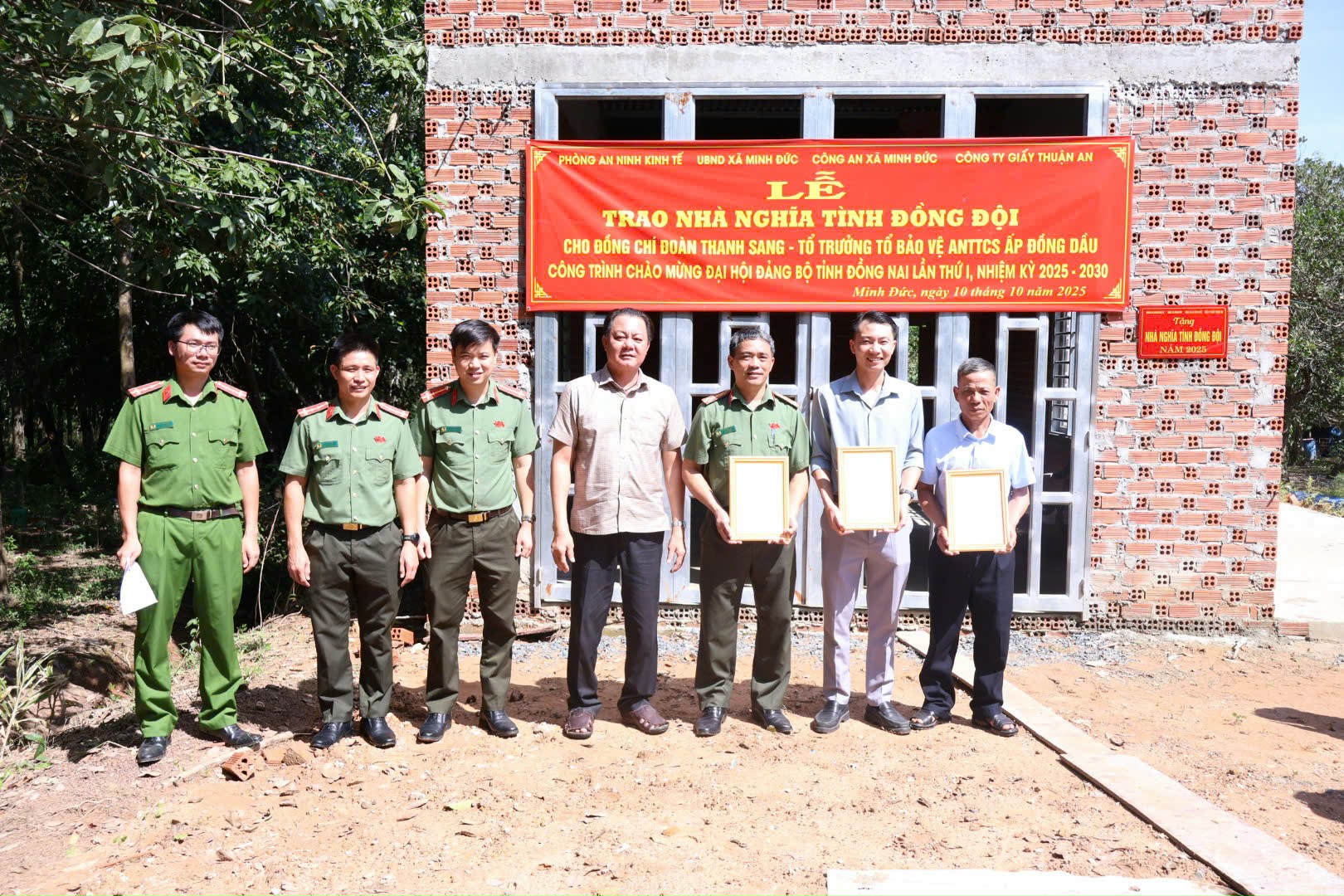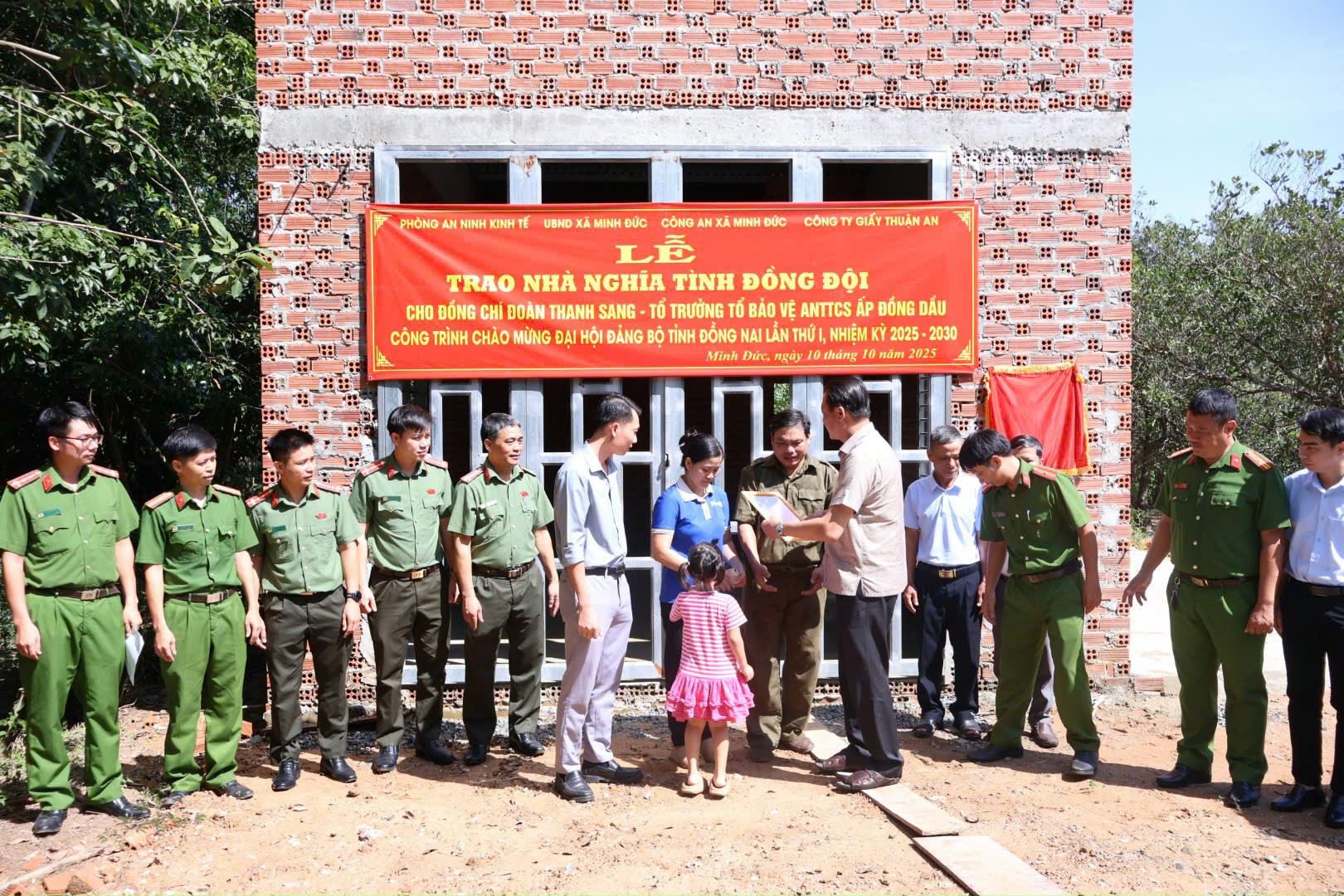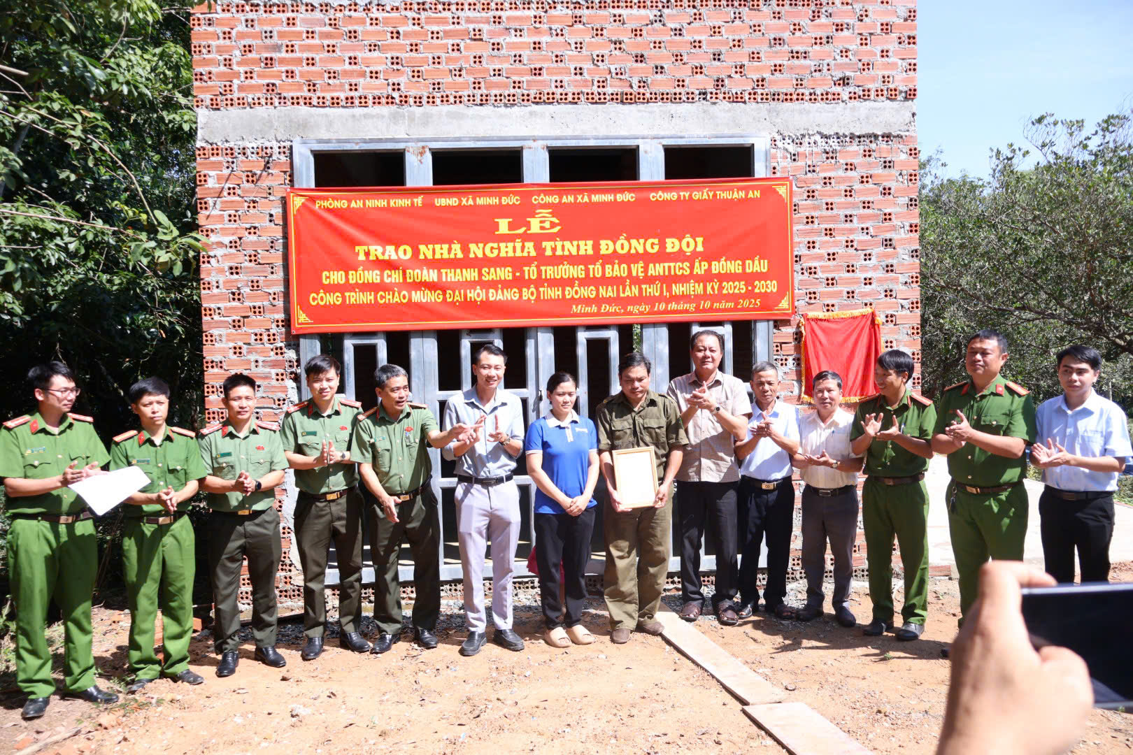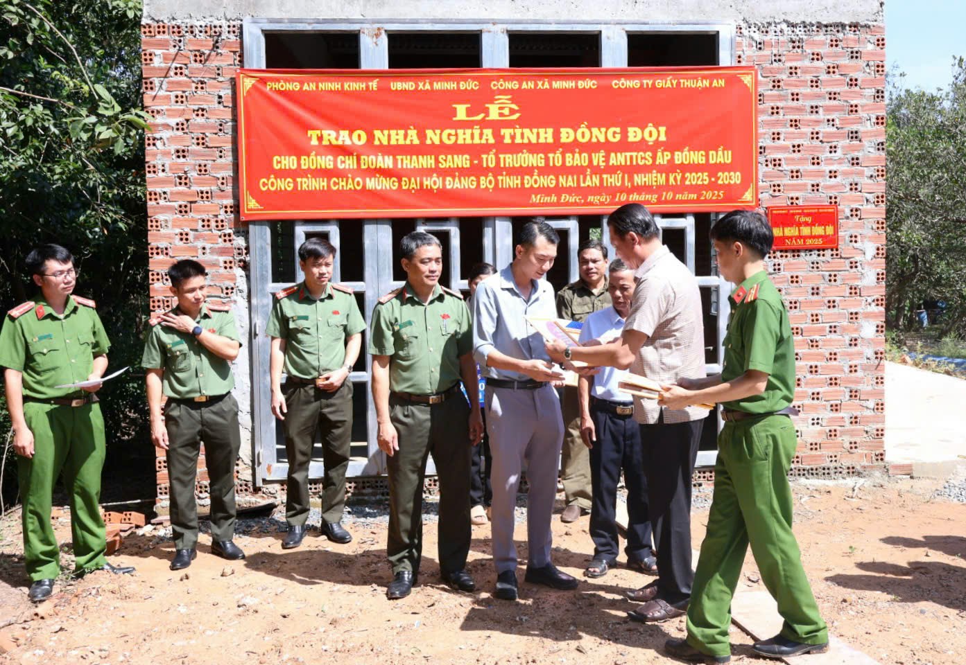 Sáng ngày 10/10/2025, tại ấp Đồng Dầu, xã Minh Đức, UBND xã Minh Đức tổ chức Lễ trao tặng nhà “Nghĩa tình đồng đội” cho đồng chí Đoàn Thanh Sang – Tổ trưởng Tổ bảo vệ an ninh trật tự cơ sở ấp Đồng Dầu.