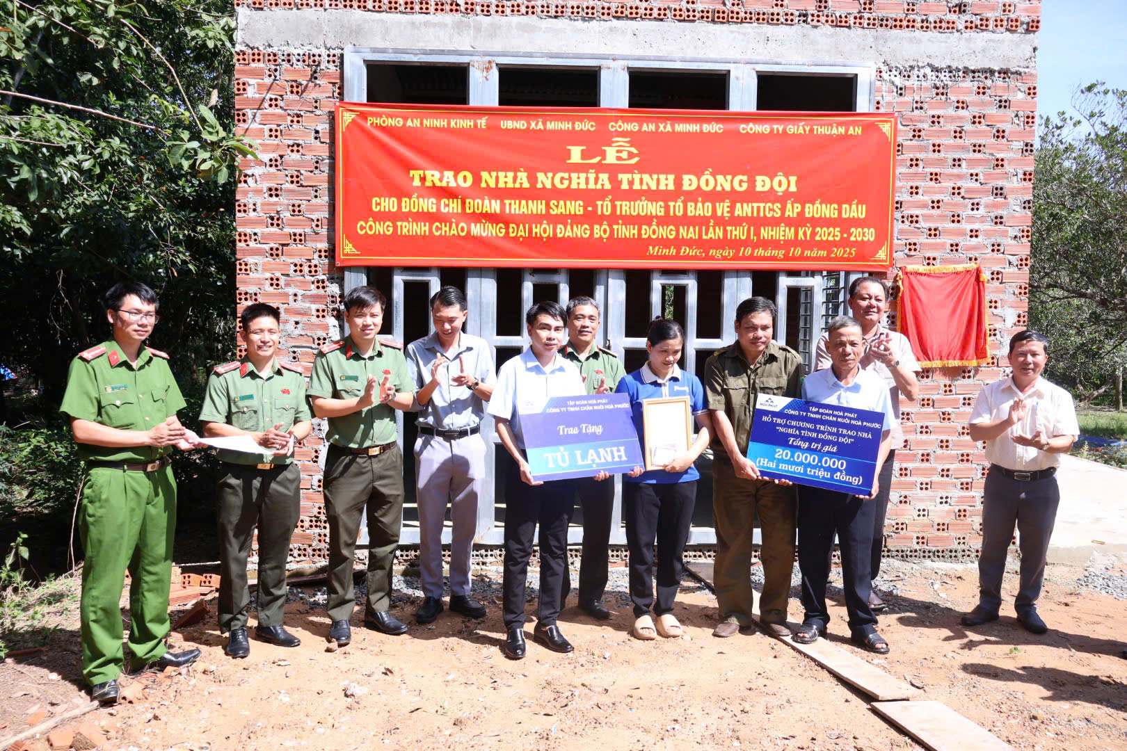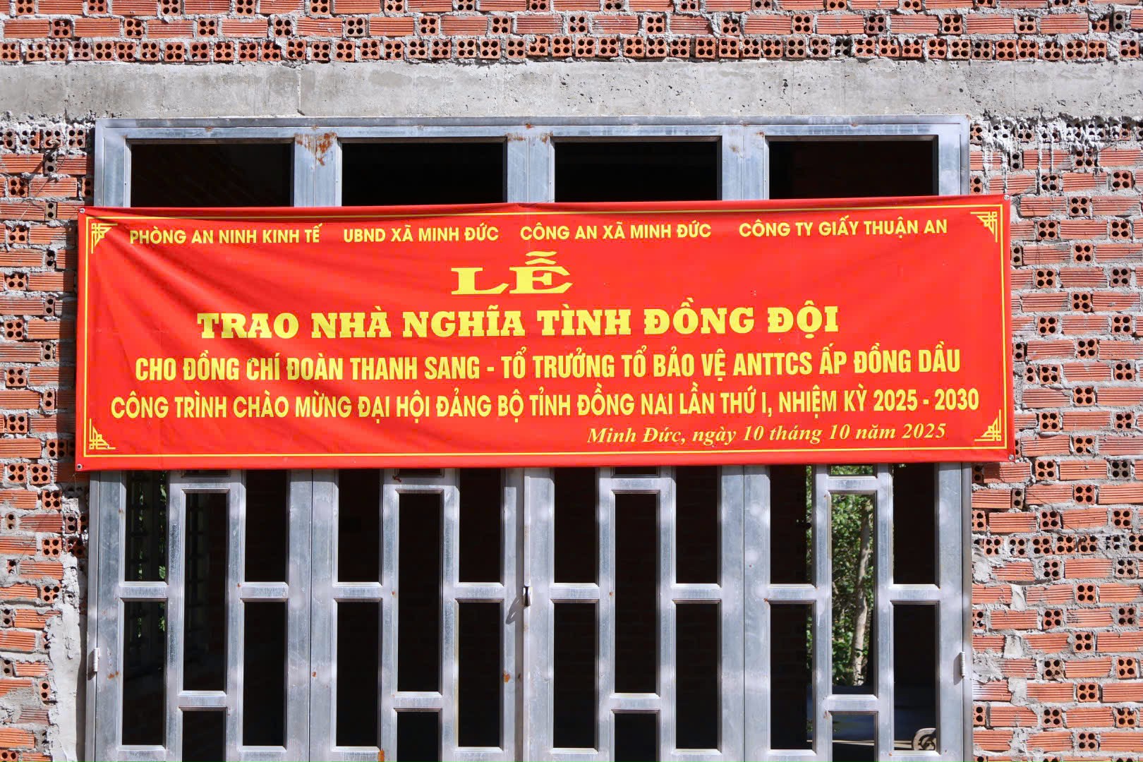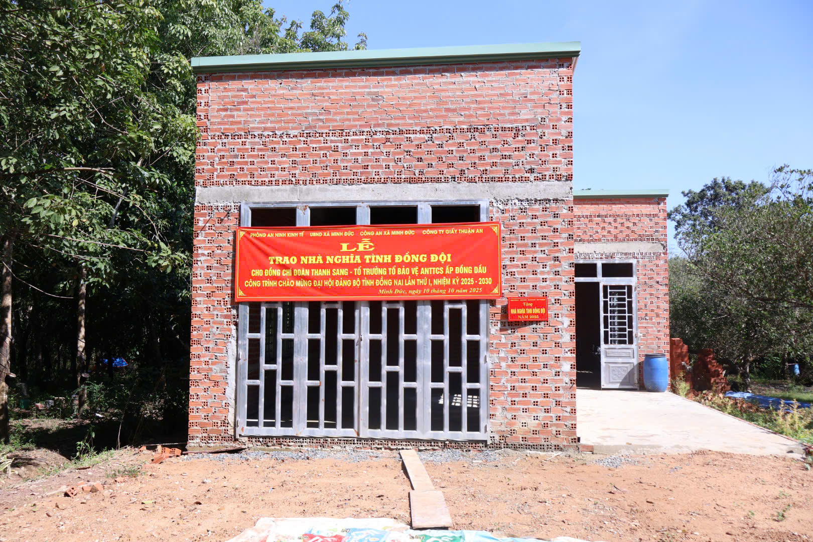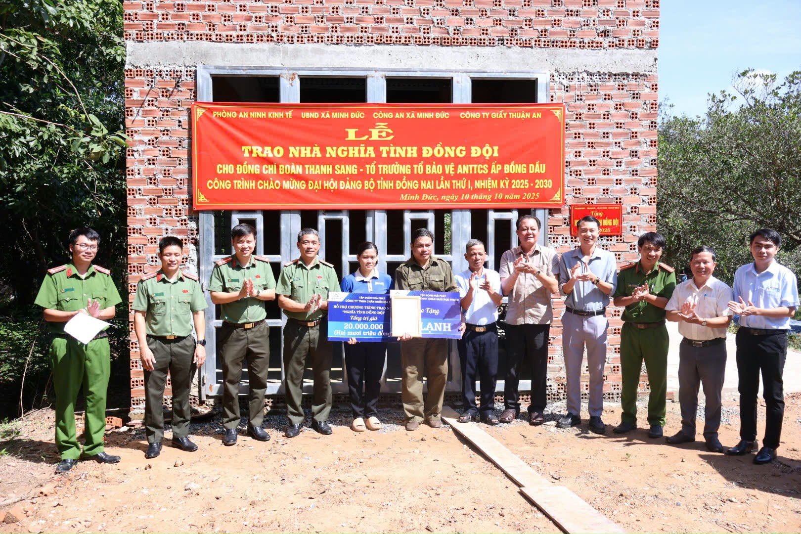 Sáng ngày 10/10/2025, tại ấp Đồng Dầu, xã Minh Đức, UBND xã Minh Đức tổ chức Lễ trao tặng nhà “Nghĩa tình đồng đội” cho đồng chí Đoàn Thanh Sang – Tổ trưởng Tổ bảo vệ an ninh trật tự cơ sở ấp Đồng Dầu.