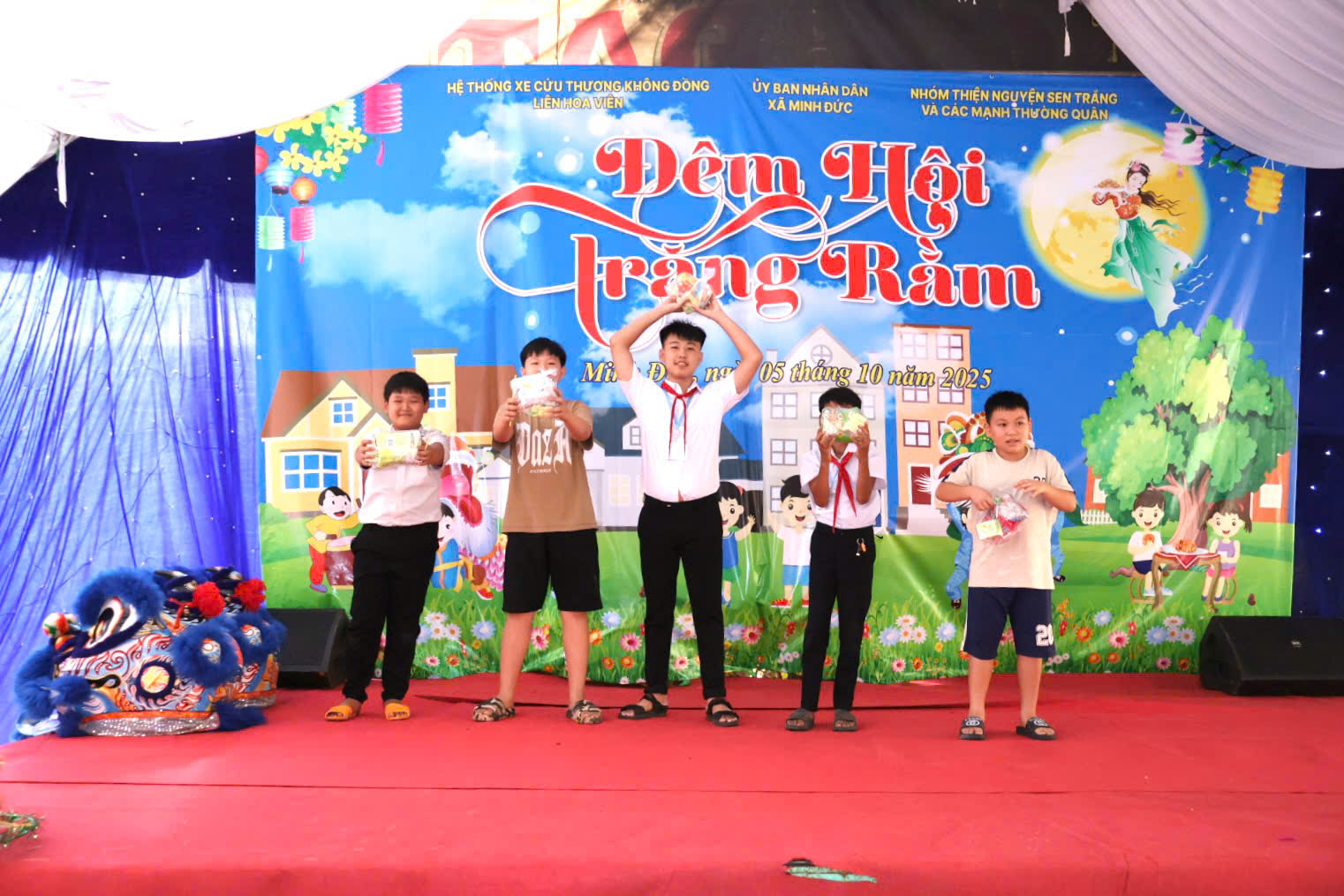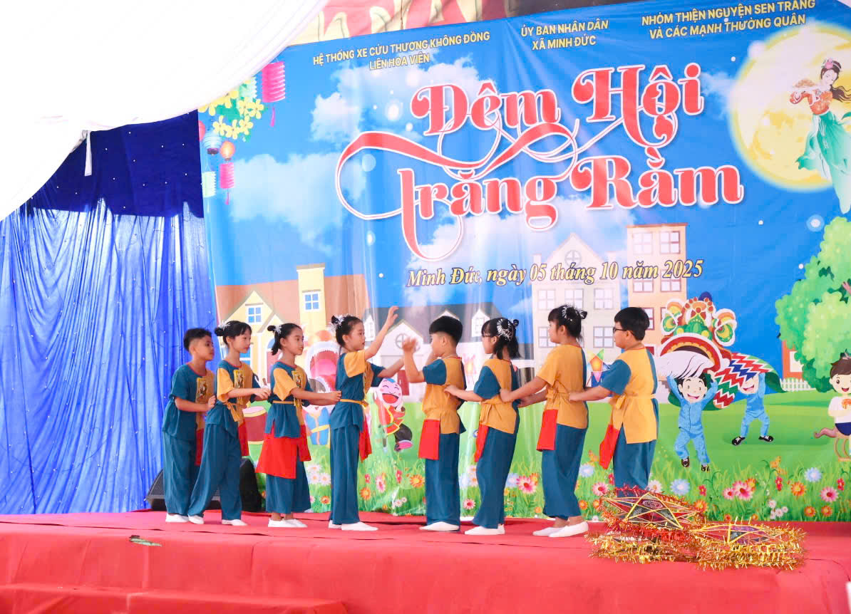 Chiều và tối ngày 05/10/2025 (nhằm ngày 14 tháng 8 năm Ất Tỵ), tại Hội trường UBND xã Minh Đức, chương trình “Đêm hội Trăng rằm năm 2025” đã diễn ra trong không khí rộn ràng, vui tươi và đầy ấm áp. Đây là hoạt động ý nghĩa nhằm mang đến cho các em thiếu nhi một mùa Trung thu trọn vẹn, đồng thời thể hiện sự quan tâm của Đảng, chính quyền và cộng đồng đối với thế hệ măng non của địa phương.