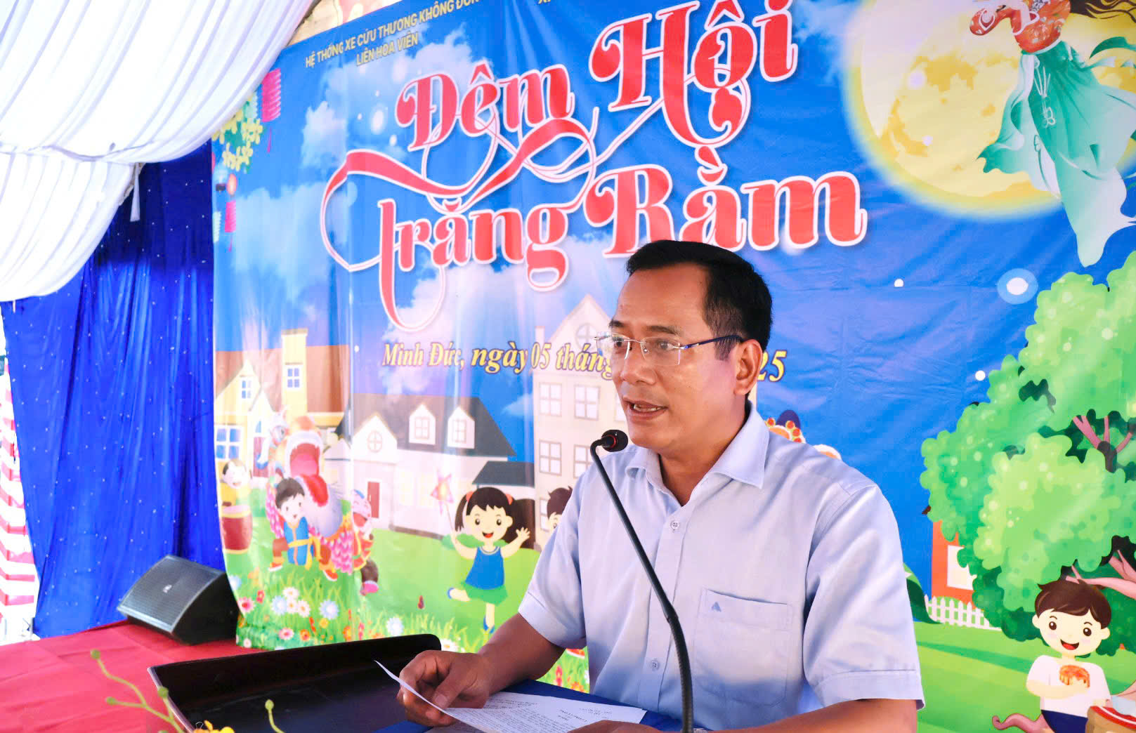Đại diện UBND xã Minh Đức đã trao thư cảm ơn cho các nhà tài trợ, ghi nhận tấm lòng sẻ chia và đồng hành cùng địa phương trong công tác chăm lo cho thiếu nhi.