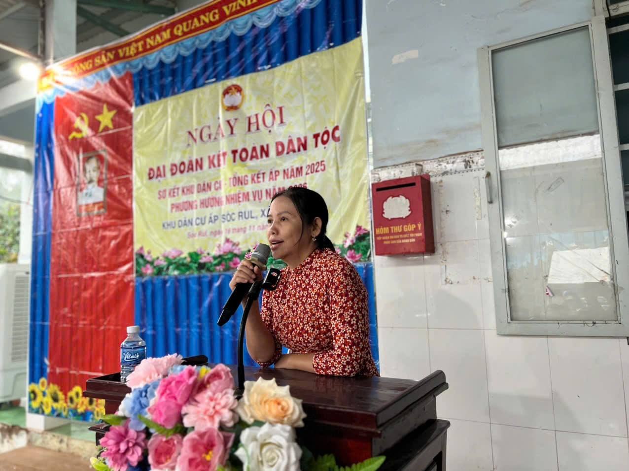 Tại ngày hội, các đại biểu và nhân dân đã cùng ôn lại truyền thống 95 năm hình thành và phát triển của Mặt trận Tổ quốc Việt Nam; đánh giá những kết quả nổi bật trong phong trào “Toàn dân đoàn kết xây dựng đời sống văn hóa”, giữ gìn an ninh trật tự, phát triển kinh tế – xã hội năm 2025 của ấp Sóc Rul.