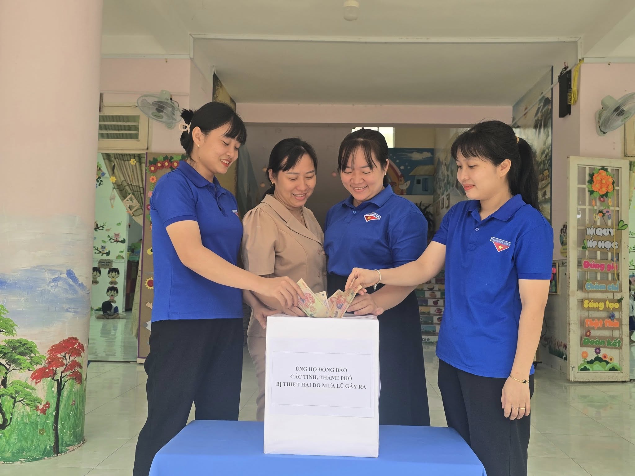 Với tinh thần "Tương thân tương ái," "Lá lành đùm lá rách," tập thể Cán bộ, Viên chức, Người lao động (CB.VC.NLĐ) Nhà trường đã tổ chức vận động và quyên góp, chung tay cùng cả nước hướng về vùng bị bão lũ: