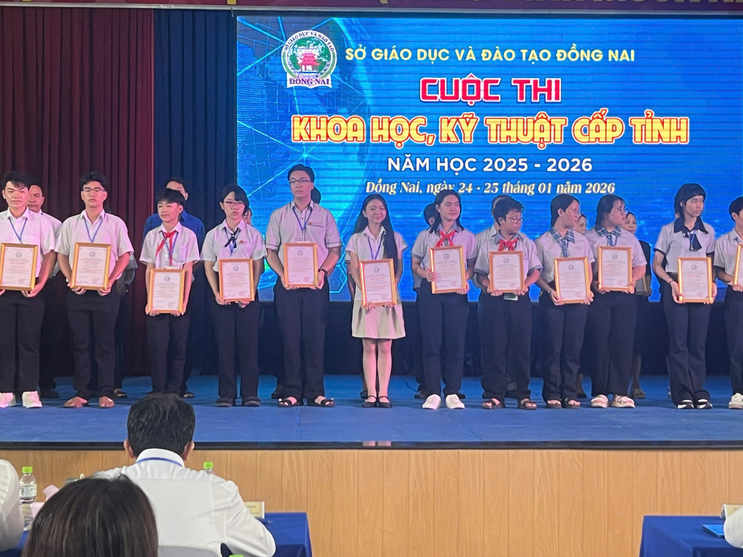 Cuộc thi Khoa học kỹ thuật học sinh trung học cấp tỉnh năm học 2025–2026 được tổ chức trong hai ngày 24 và 25/01/2026 tại Trường THPT Lê Quý Đôn – Long Bình Tân và Trường Cao đẳng Công nghệ – Quản trị Sonadezi. Đây là sân chơi trí tuệ bổ ích, góp phần khuyến khích tinh thần nghiên cứu khoa học, đổi mới sáng tạo trong học sinh, đồng thời tạo điều kiện để các em vận dụng kiến thức đã học vào thực tiễn.