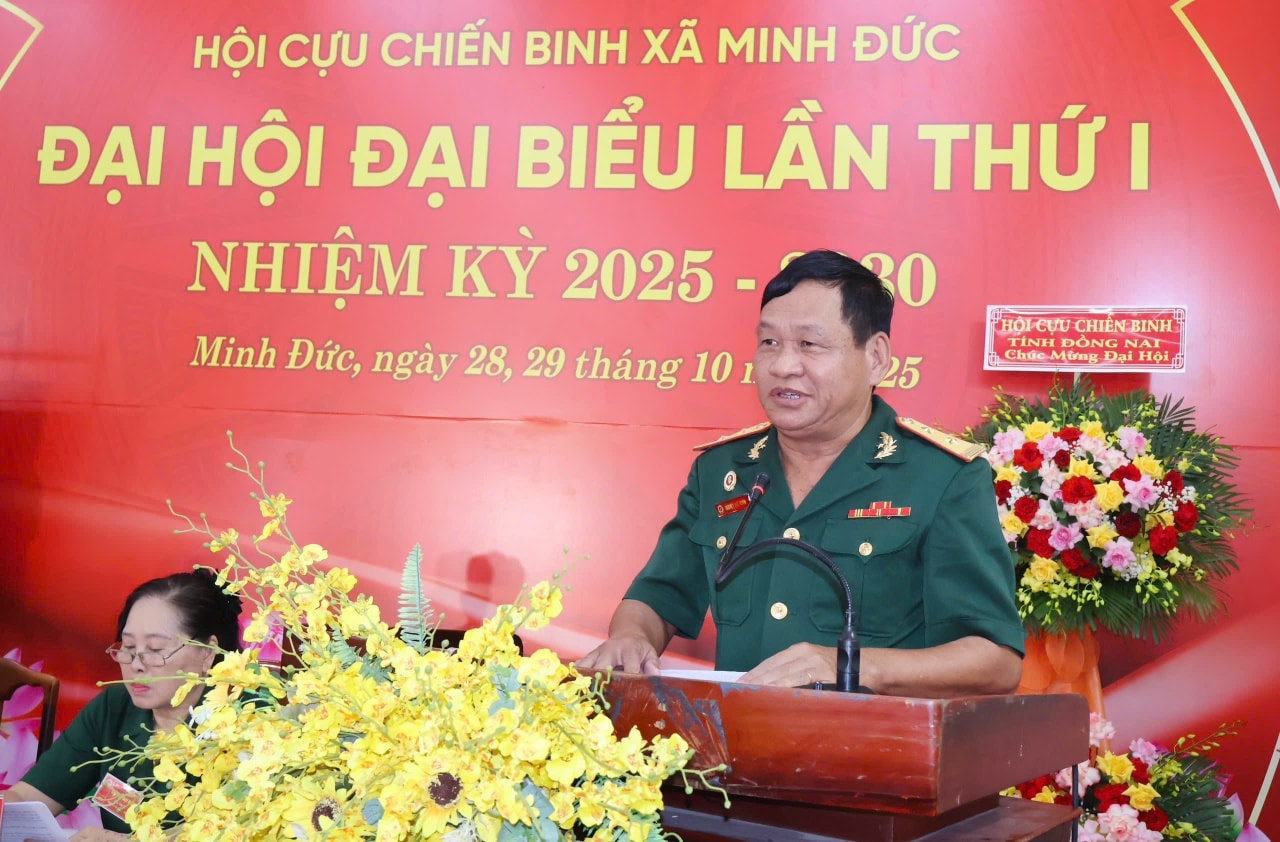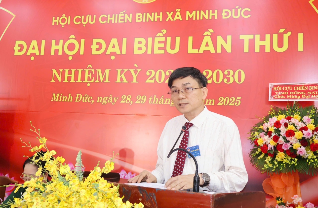 Đồng chí Nguyễn Đức Huân – đại diện Hội Cựu chiến binh tỉnh Đồng Nai và đồng chí Trần Văn Phương – Bí thư Đảng ủy xã Minh Đức đã phát biểu chúc mừng, biểu dương những kết quả nổi bật của Hội trong nhiệm kỳ qua.