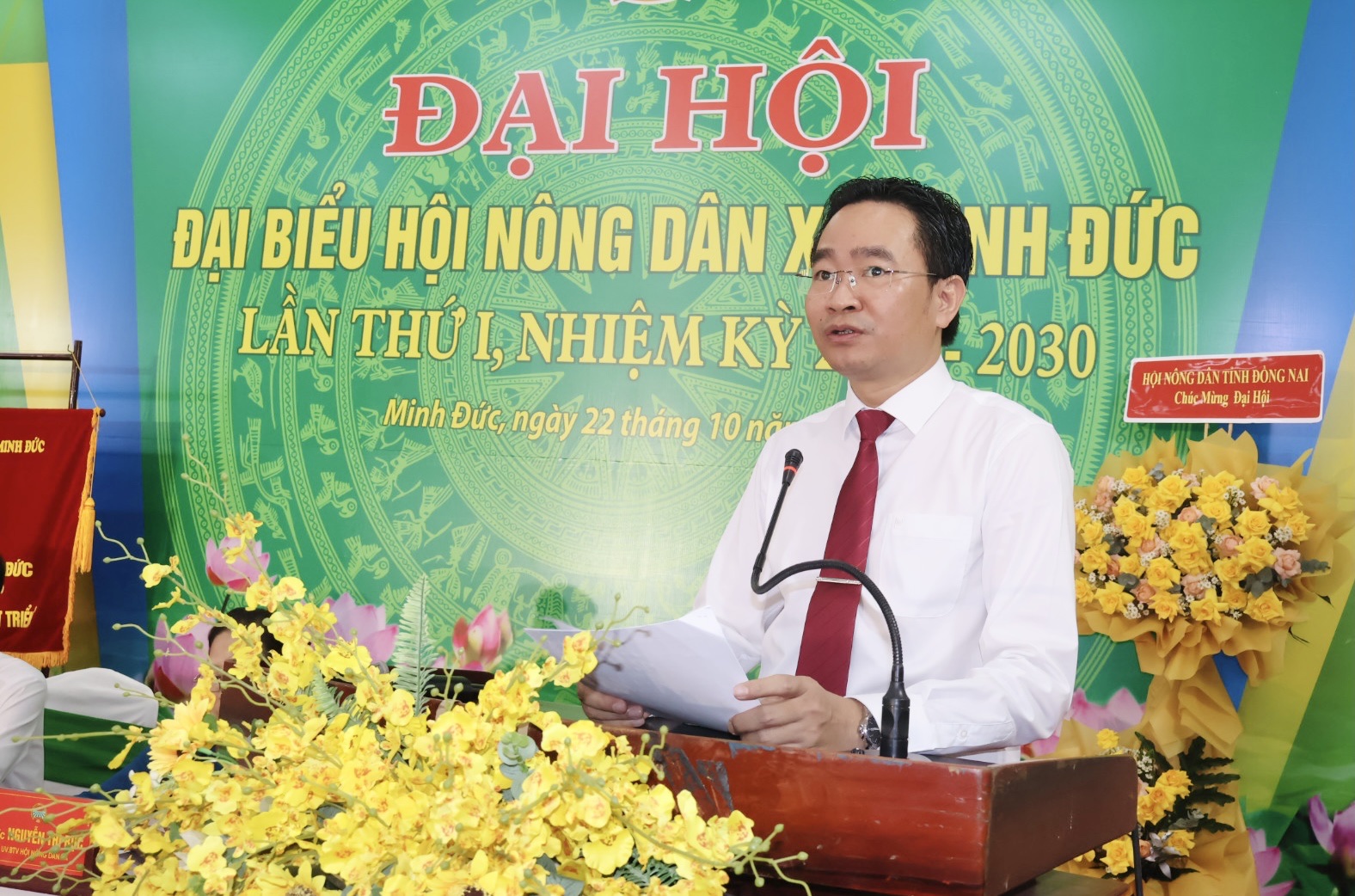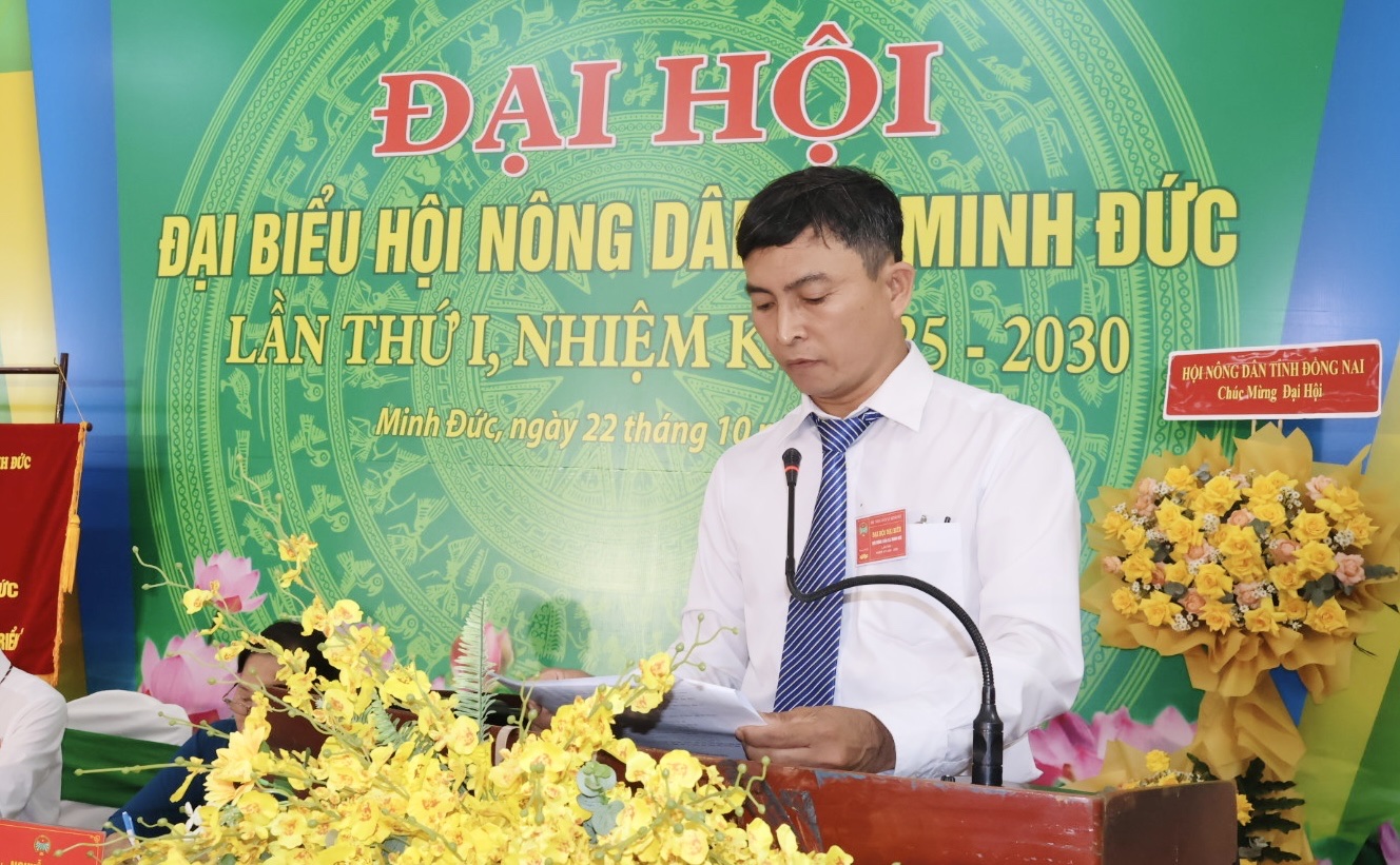 Phát biểu chỉ đạo tại Đại hội, Đồng chí Nguyễn Văn Giang – Phó Chủ tịch Hội Nông dân tỉnh và Đồng chí Trần Văn Phương – Bí thư Đảng ủy, Chủ tịch HĐND xã ghi nhận, biểu dương những kết quả đạt được, đồng thời đề nghị Hội Nông dân xã Minh Đức tiếp tục đổi mới nội dung, phương thức hoạt động, đẩy mạnh phong trào thi đua nông dân sản xuất – kinh doanh giỏi, ứng dụng khoa học công nghệ, chuyển đổi số trong nông nghiệp, tích cực tham gia các chương trình mục tiêu quốc gia về giảm nghèo bền vững và xây dựng nông thôn mới.