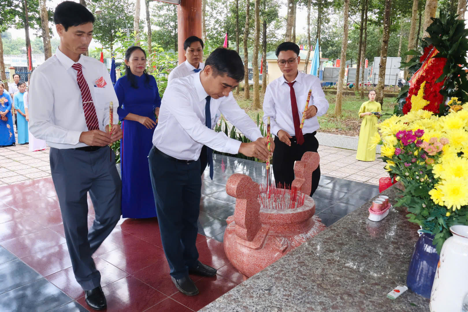💠 Trước khi bước vào nội dung làm việc, các đại biểu đã dâng hương tại Nhà bia tưởng niệm các Anh hùng Liệt sĩ, thể hiện lòng tri ân sâu sắc đối với các thế hệ cha anh đã hy sinh vì độc lập, tự do của Tổ quốc.